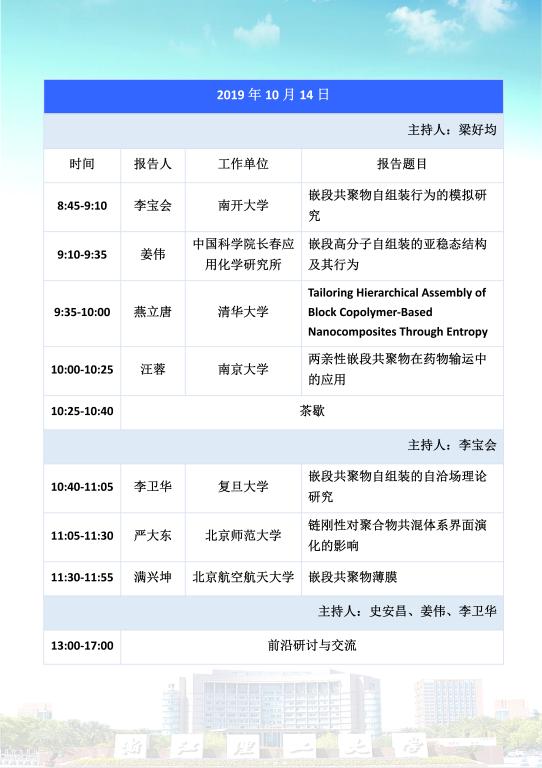 2019嵌段共聚物自组装理论模拟论坛 第二轮通知