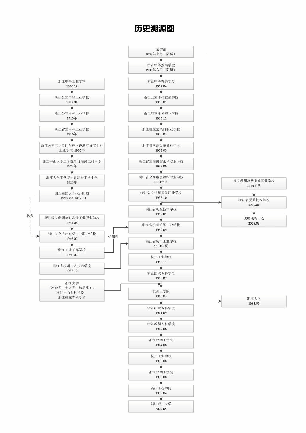 1952年9月,浙江省制丝技术学校合并了“浙江工业干部学校”纺织科,更名为“浙江省杭州纺织工业学校”,设制丝、纺织两个专业。“浙江工业干部学校”纺织科的前身是“浙江省立杭州高级工业职业学校”染织科,其前身是1910年12月创办的“浙江中等工业学堂”;此后,先后更名为“浙江公立中等工业学校”“浙江省立甲种工业学校”等,抗战爆发后停办;1946年2月在杭州复校,恢复校名为“浙江省立杭州高级工业职业学校”;1950年2月,该校与其他学校合并成立“浙江工业干部学校”,设机械、土木、化学、测量、纺织(原为染织)五科。杰出校友都锦生、常书鸿、陈之佛、夏衍、沈西苓等实业家、教育家、艺术家先后毕业于该校染织科。